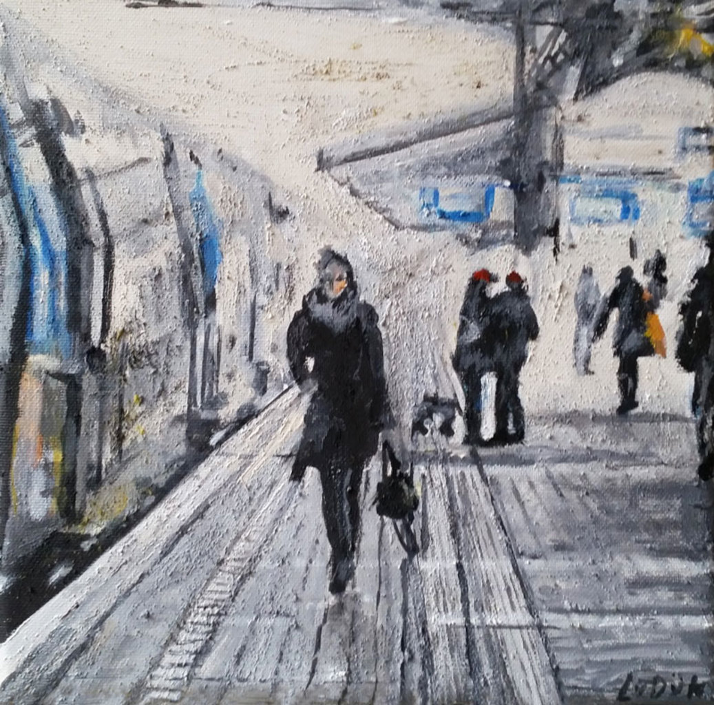 Iets in de buitenwereld intrigeert mij en door deze impressie uit te werken wordt zij blijvend deel van mijn binnenwereld. Laag na laag bouw ik aan de uiteindelijke vorm. Tijdens het werken komt er een stroom van associaties op gang. Het is een constant zoeken naar evenwicht tussen de verf en de andere materialen.