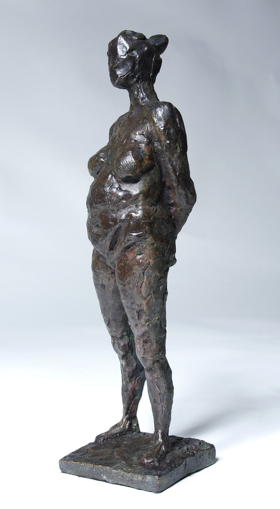 Oudere vrouw, staand naakt, bruin
