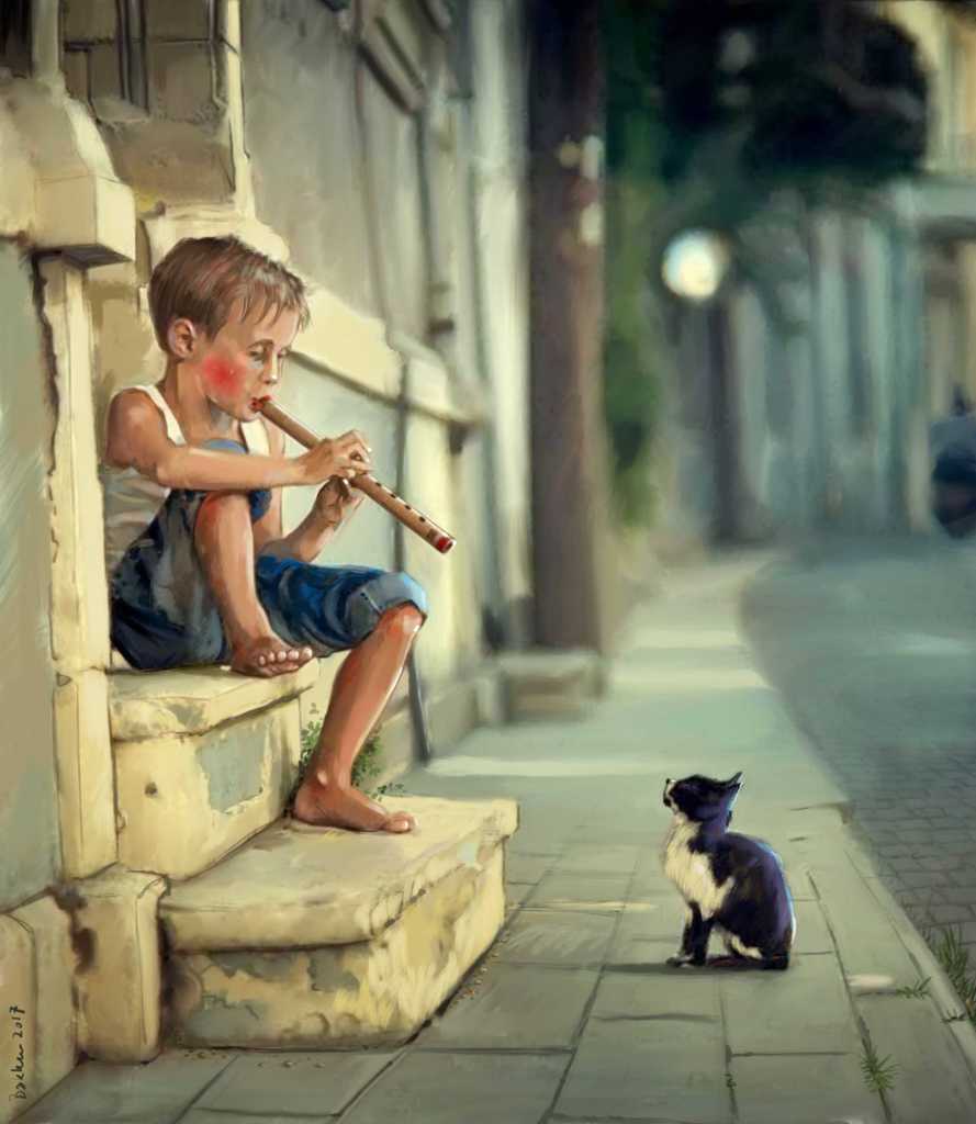 Jongen met fluit en kat