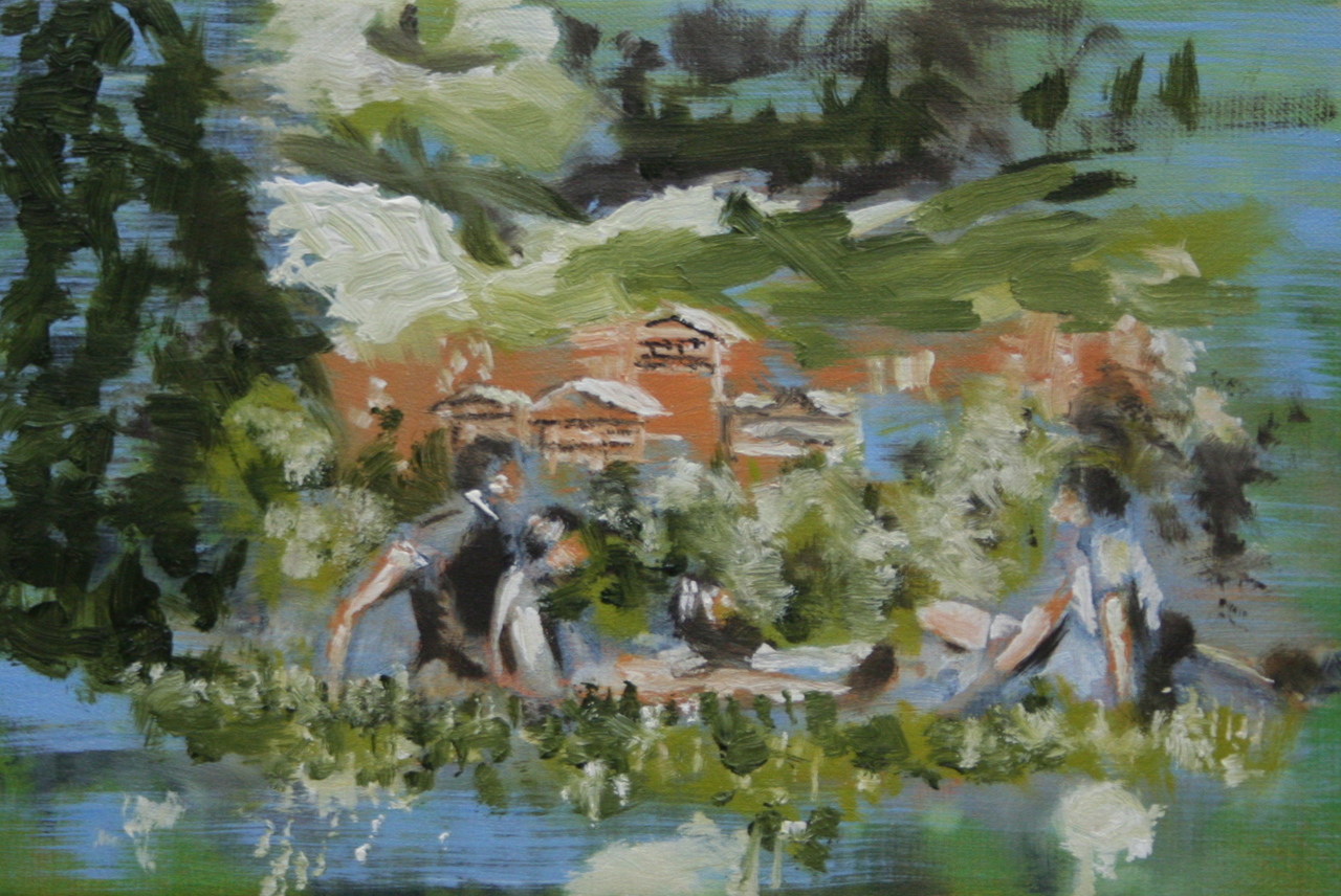 De mens geplaatst in een setting trekt mijn aandacht en nieuwsgierigheid. Mijn uitgangspunt bij het maken van mijn huidige schilderijen is de spelende mens. De weergave van de ruimte met zijn attributen zoals de belichting, een natuurlijke omgeving of een in cultuur gebrachte omgeving, brengen mij opnieuw in contact met die ervaren werkelijkheid. Wat mij bezighoudt is dat het geschilderde zich gaat verbinden en in de plaats komt te staan van de opgedane indrukken en gevormde herinneringen.