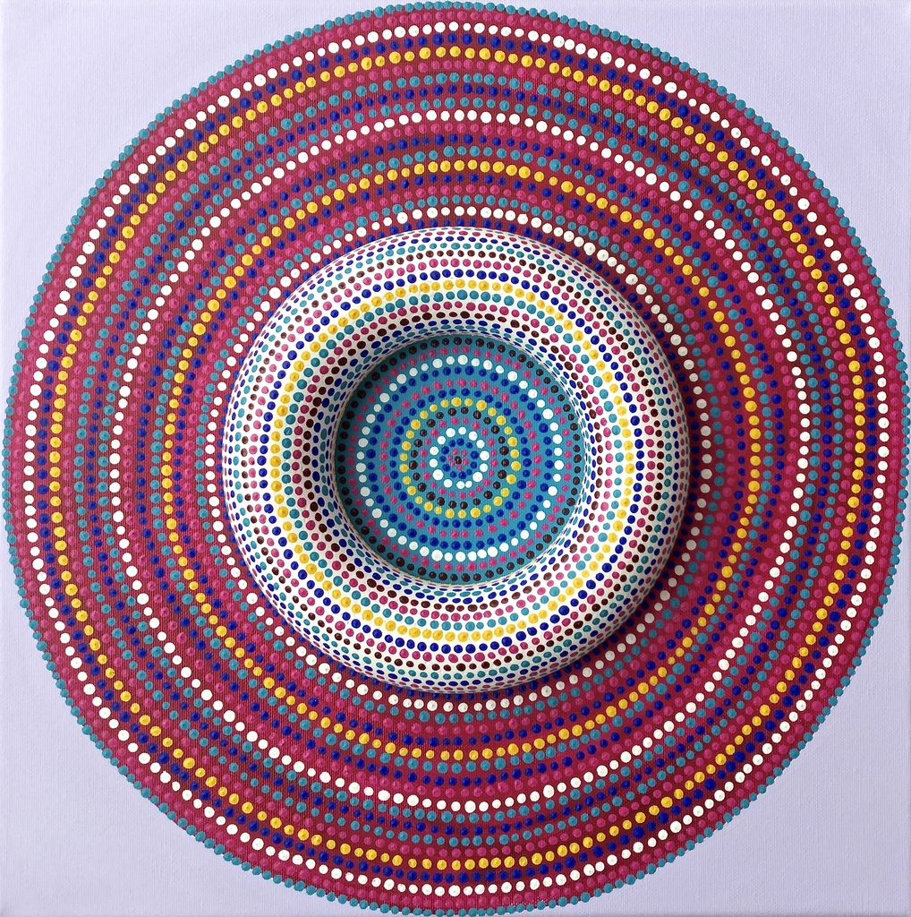 “Kunst met een puntje meer….” Het werk van Milène Evers is een fusie van geometrische abstractie en andere culturele uitingen. Stippen zijn haar belangrijkste uitdrukkingsmiddel, naast kleurgebruik. Het samengaan van ritme, structuur en balans spelen in haar werk een grote rol. Naast schilderijen creëert Milène unieke sieraden van glasmozaïek.
