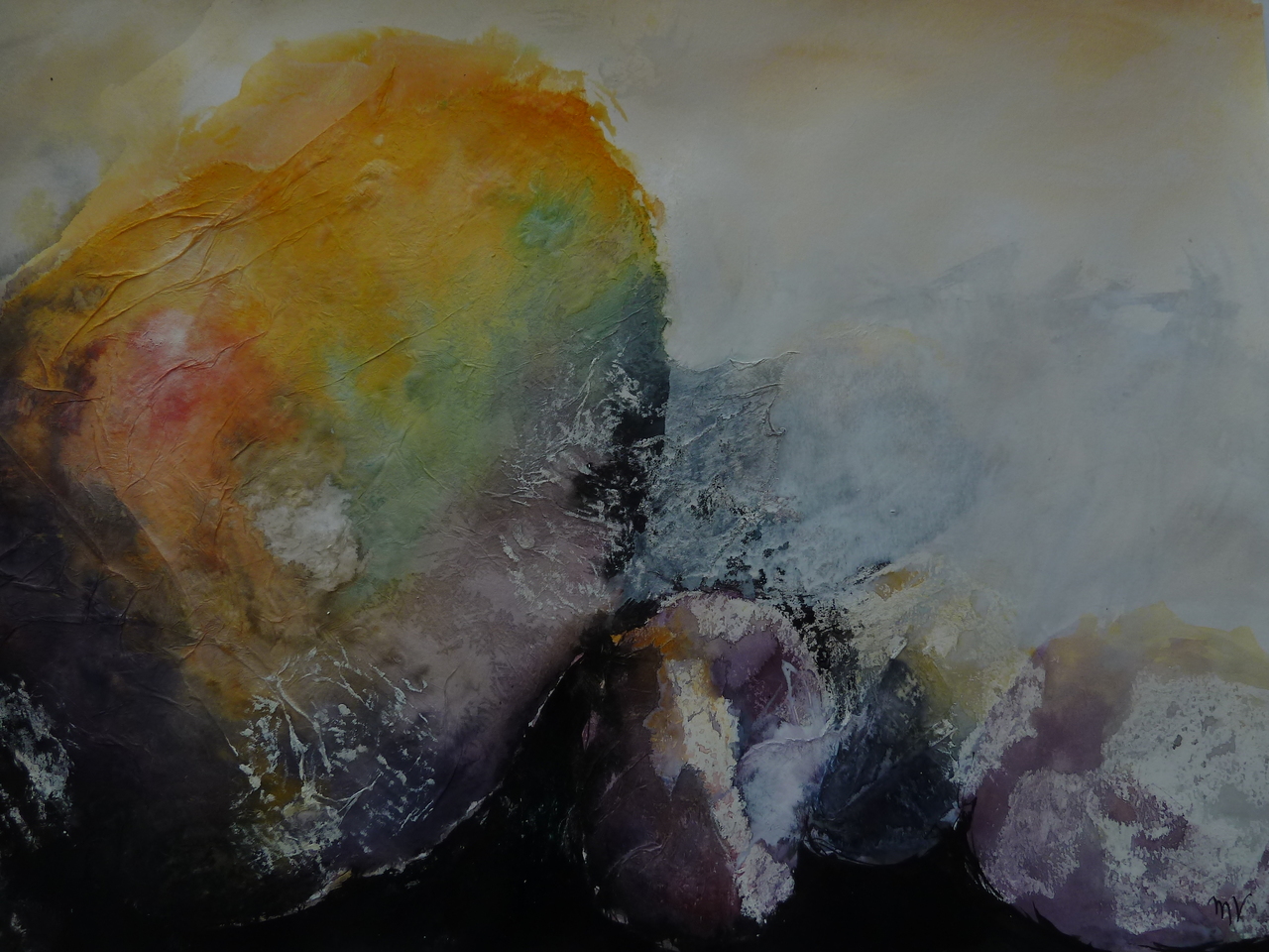 Mijn onderwerpen vind ik zowel in mijzelf als in mijn omgeving. Ik begin te werken vanuit de waarneming en laat deze dan langzamerhand steeds meer los.