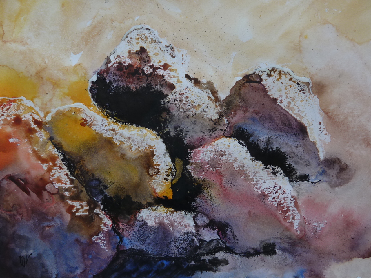 Mijn onderwerpen vind ik zowel in mijzelf als in mijn omgeving. Ik begin te werken vanuit de waarneming en laat deze dan langzamerhand steeds meer los.