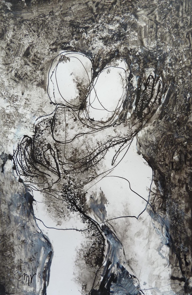 Mijn onderwerpen vind ik zowel in mijzelf als in mijn omgeving. Ik begin te werken vanuit de waarneming en laat deze dan langzamerhand steeds meer los.