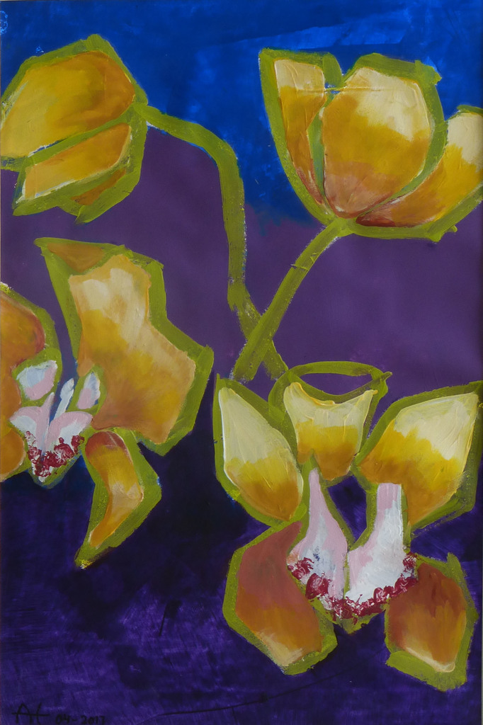 Geel Blauw Acryl Paars Bruin Orchidee