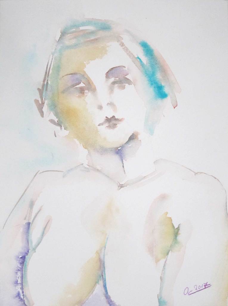 Aquarel Model Ongekleed Vrouw