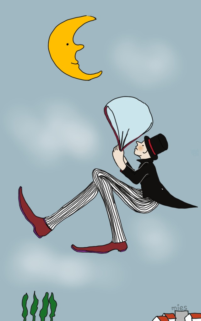 Heer Bottevel reist aan zijn zakdoek door de lucht.