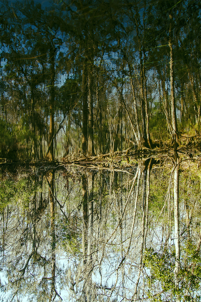 Wakulla Springs. Foto omgekeerd en bewerkt in kleurcontrast.