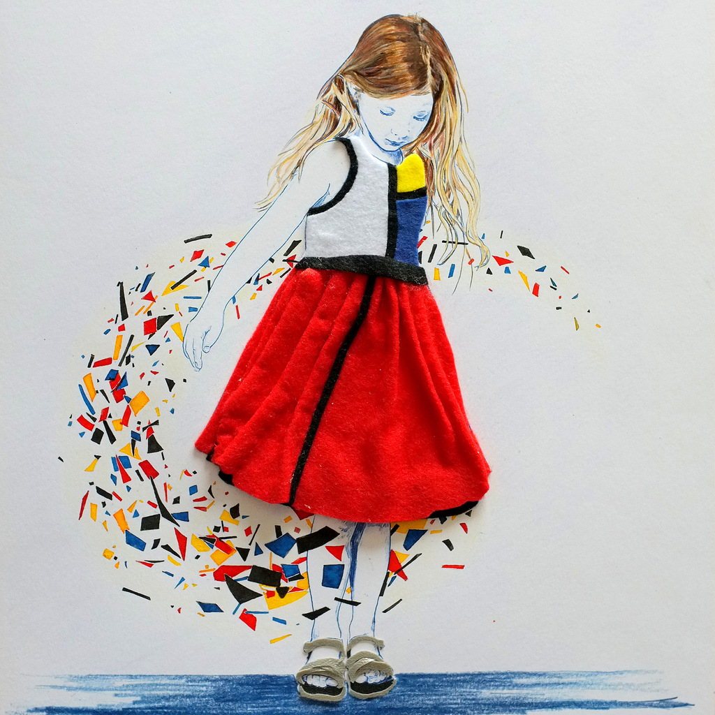 "Sway with the boogie woogie" Gemengde techniek op papier 51 x 51 cm speciaal gemaakt voor het 100-jarig jubileum van De Stijl | Mondriaan