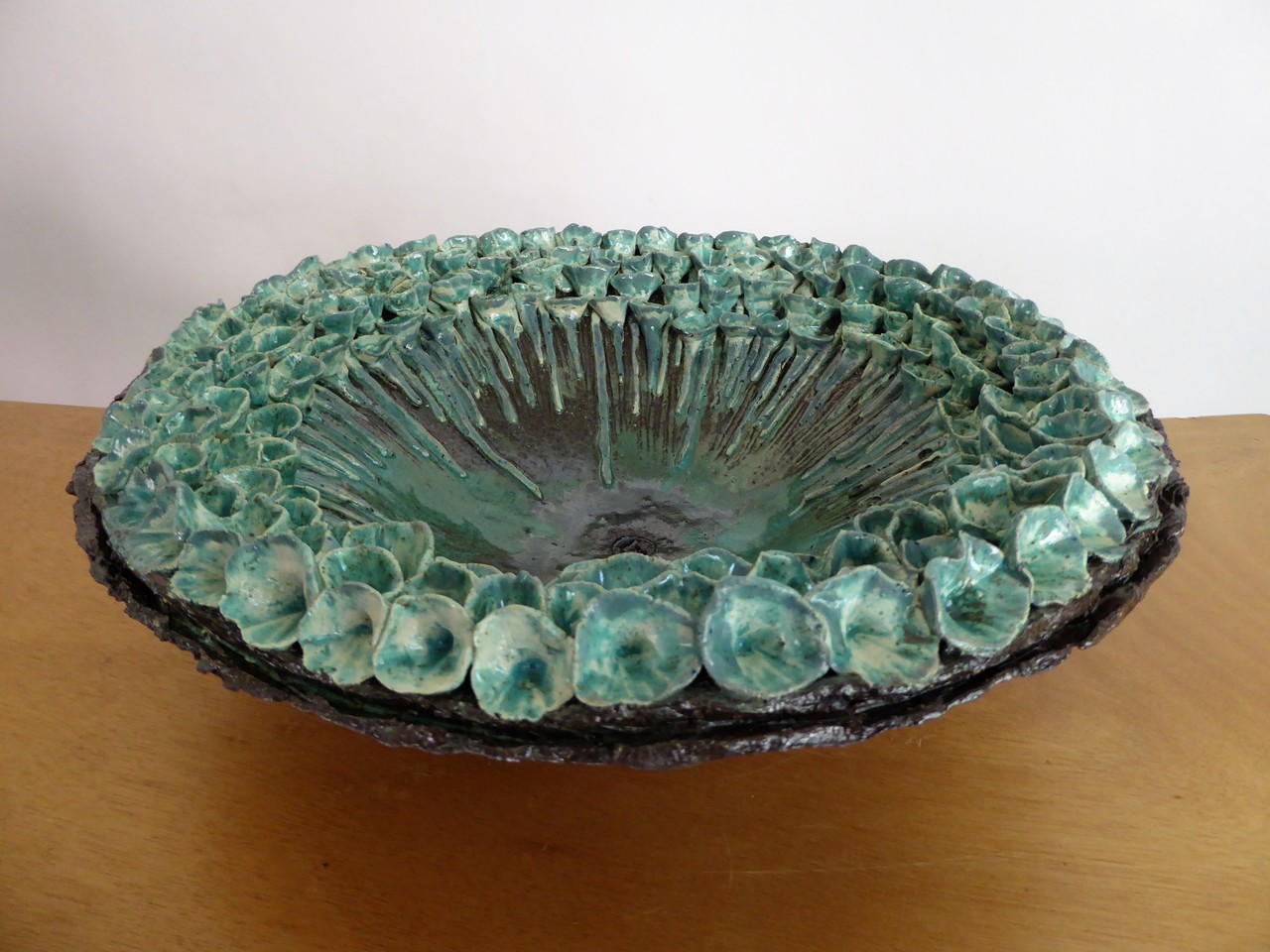 Object 10 uit serie ZEESCHALEN Ronde schaal van keramiek, gemaakt van witte en zwarte klei. Afgewerkt alleen aan de binnenzijde met 2 kleuren glazuur.