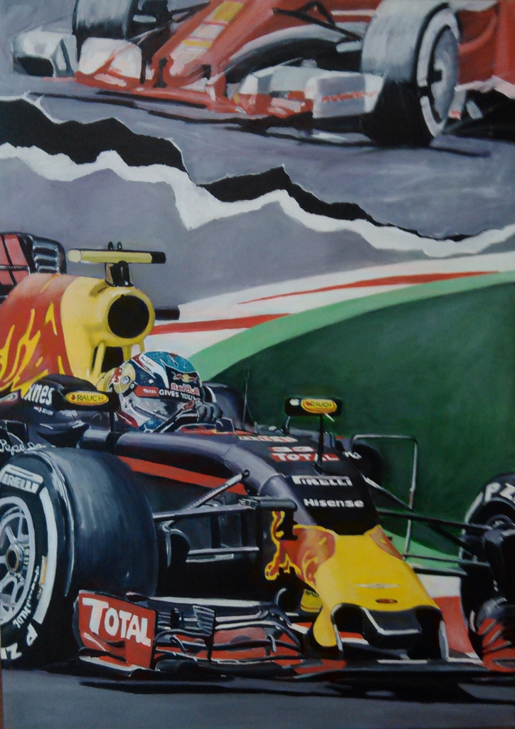 ...een van de laatste bochten van de overwinningsrace van Max Verstappen in Barcelona 2016....hij is weggescheurd van Kimmi.