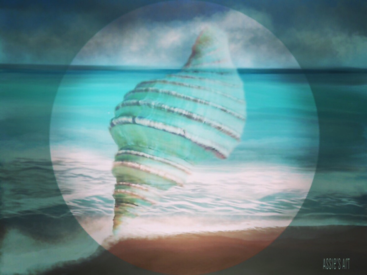 Oceaan Zee Schelp Natuur Blauw Groen Aqua Surreëel Ocean Sea Shell Blue Green Nature Digital Art Drawing Digitaal Kaart