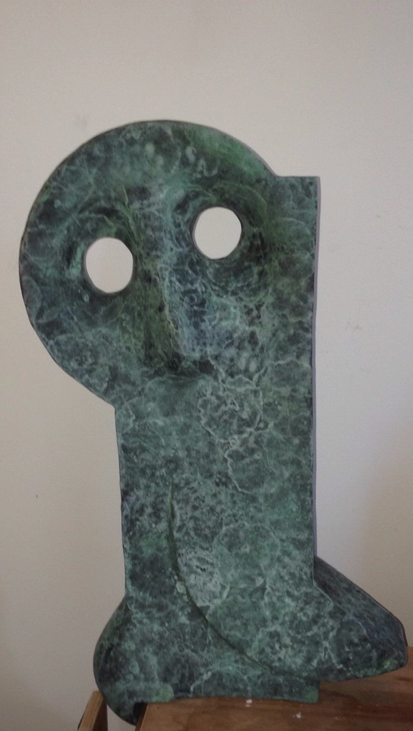 De bronzen uil geeft een doorkijkje. Heeft geen voor of achterkant.Gemaakt volgens de verloren was methode.
