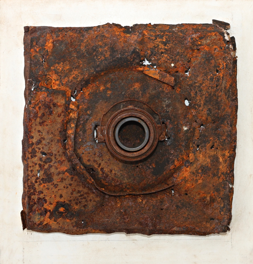 samengesteld uit hout, geroest metaal en aluminium