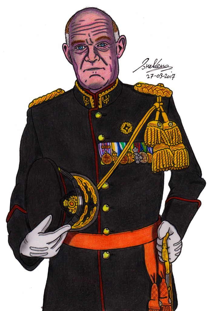 Generaal-majoor der Infanterie Nico Geerts (1961) Gekleed in het Bijzonder Ceremonieel Tenue (BCT) van het Regiment Stoottroepen Prins Bernhard.