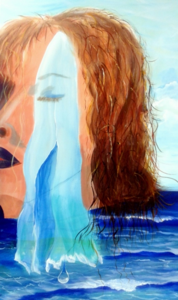 Floating Sea Tears Woman Surreal Face Stromen Tranen Vrouw Surrealistisch Zee Gezicht