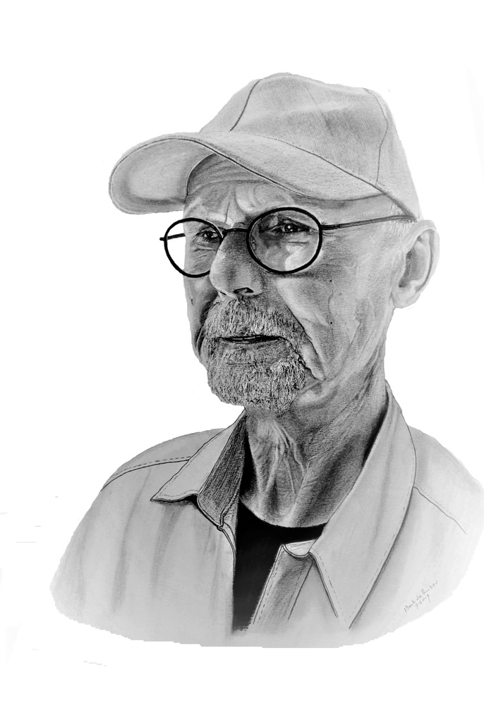 Portret Man Krijt Realistisch Houtskool Pet Grafiet Oudere Sik