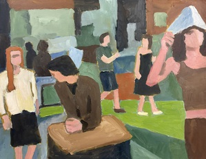 Ik schilder graag mensen in allerlei situaties, binnen of buiten.