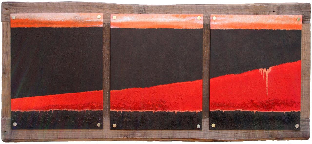Op vakantie in Frankrijk stonden we met onze camper op een plek waar de aarde een prachtige kleur had. Zo kwam dit schilderij tot stand. Het is verkocht en hangt nu in een buitenhuis in Italië.
