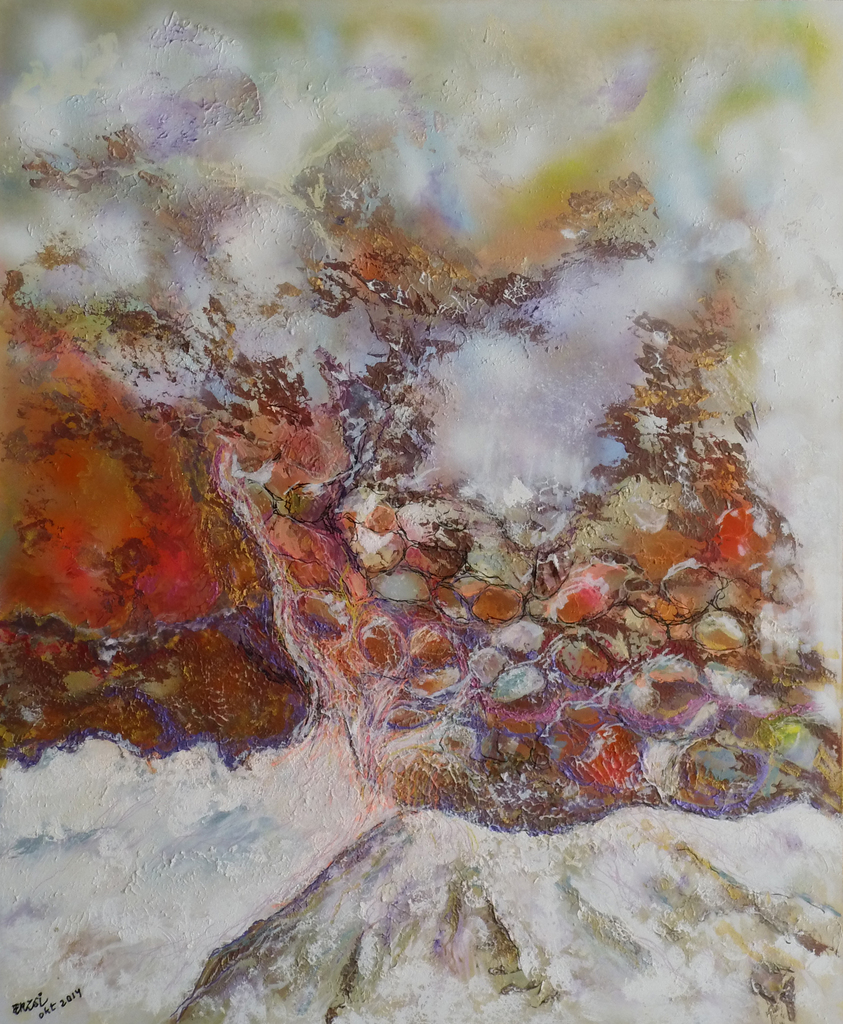 Bij het schilderen is voor mij is de hoofdzaak: heldere kleuren, licht, een verlangen naar schoonheid en vooral VRIJHEID in de vorm van tonen van diepe zieleroerselen en het vangen en vastzetten van alles wat mij raakt.