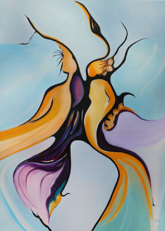 Ik schilder abstract, maar ook realistisch, zoals bloemen en dieren. Verder maak ik tekeningen met potlood en kleurpotlood.