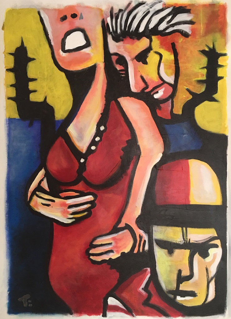 Jongetje is boos op zwangere moeder (geïnspireerd op werken van Herman Brood)