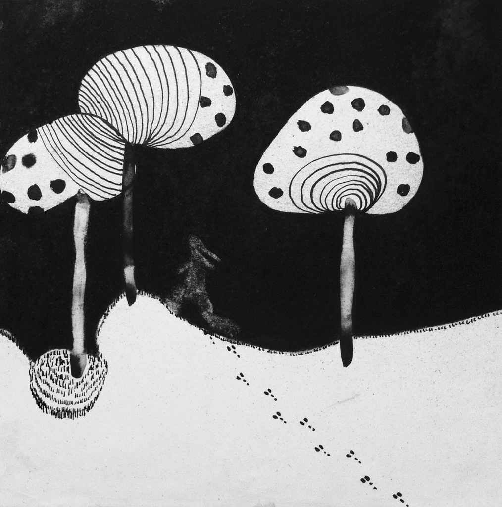 OI-inkt, houtskool 20 x 20 cm