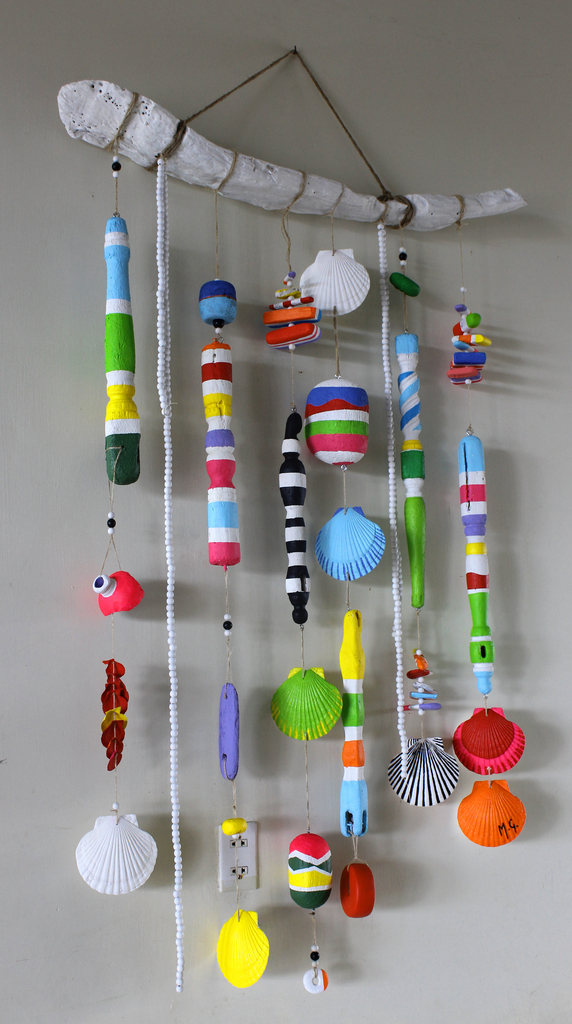 Driftwood Drijfhout Beschilderd Schelpen Beach Ocean