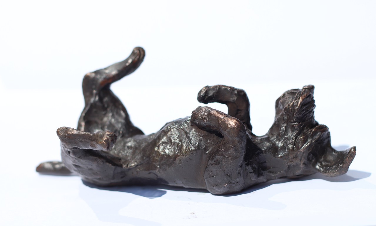 Hondje op liggend op zijn rug wil geaaid worden ! Oplage 6 stuks. Zie mijn andere hondenbeeldjes. Mooi om bij elkaar te zetten.