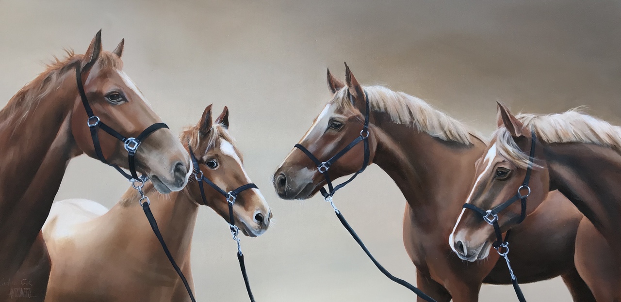 Een groep paarden gemaakt in opdracht.