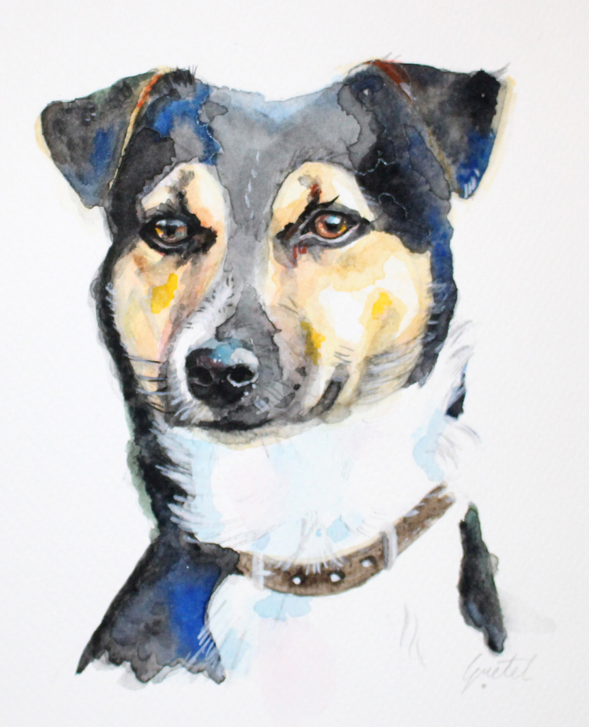 Aquarel van Nipper de Jack Russell van Gretel de Laat.