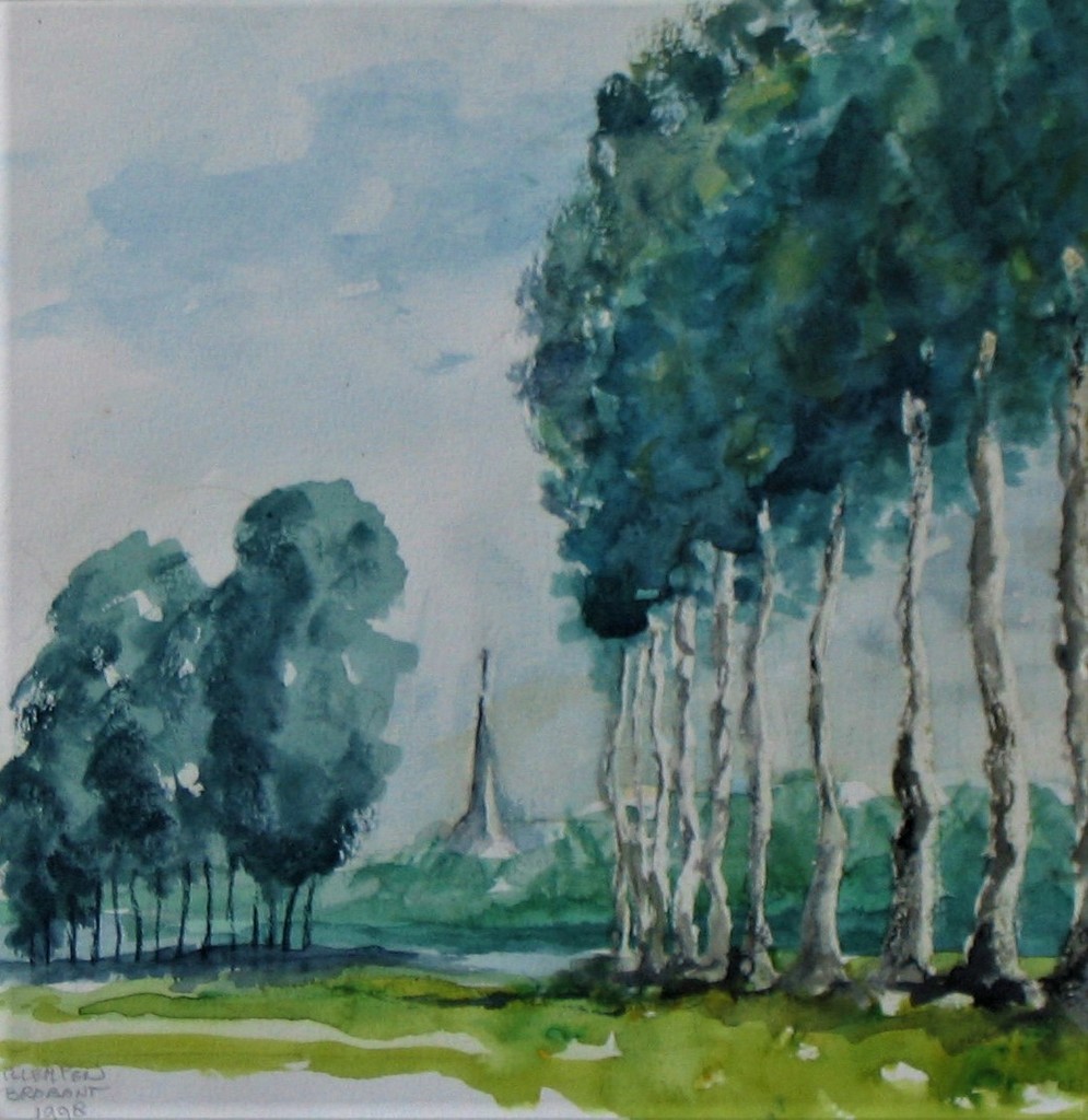 Brabants landschap met kerktoren Ingelijst in passe-partout 40 x 50