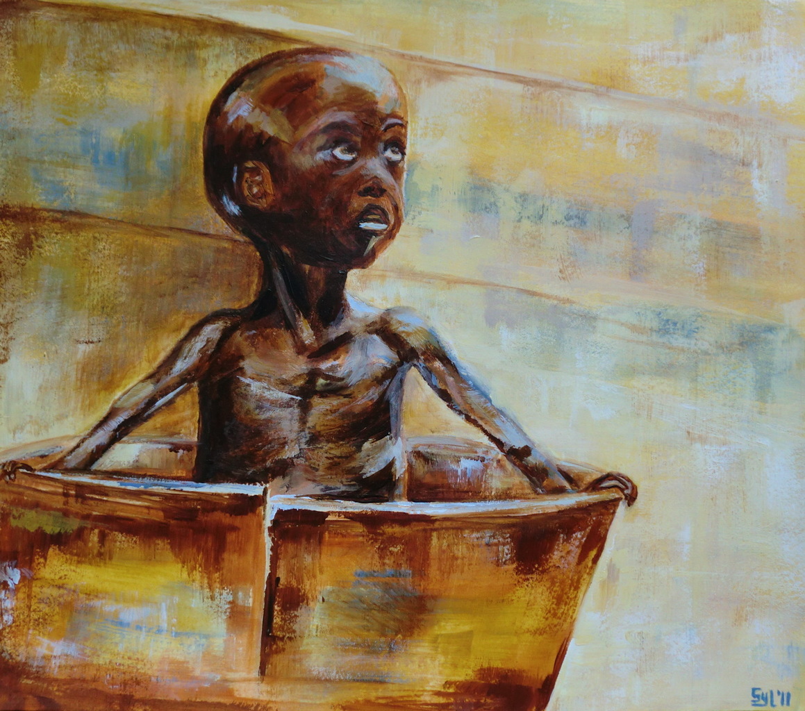 Acryl Kind Portret Bruin Oker Honger