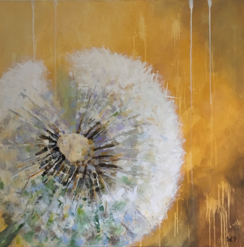 Acryl Oker Paardenbloem Uitgebloeid