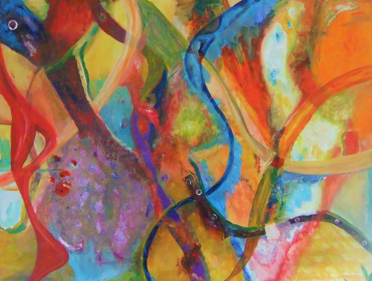 De eerder genoemde meandering is verder gegaan dan Anreperdiep en Deurzerdiep. Nijlands Loopje en Drentse Aa zijn er bij gekomen, het nieuw onstane krioelende leven in bochtige beken is hier abstract weergegeven.