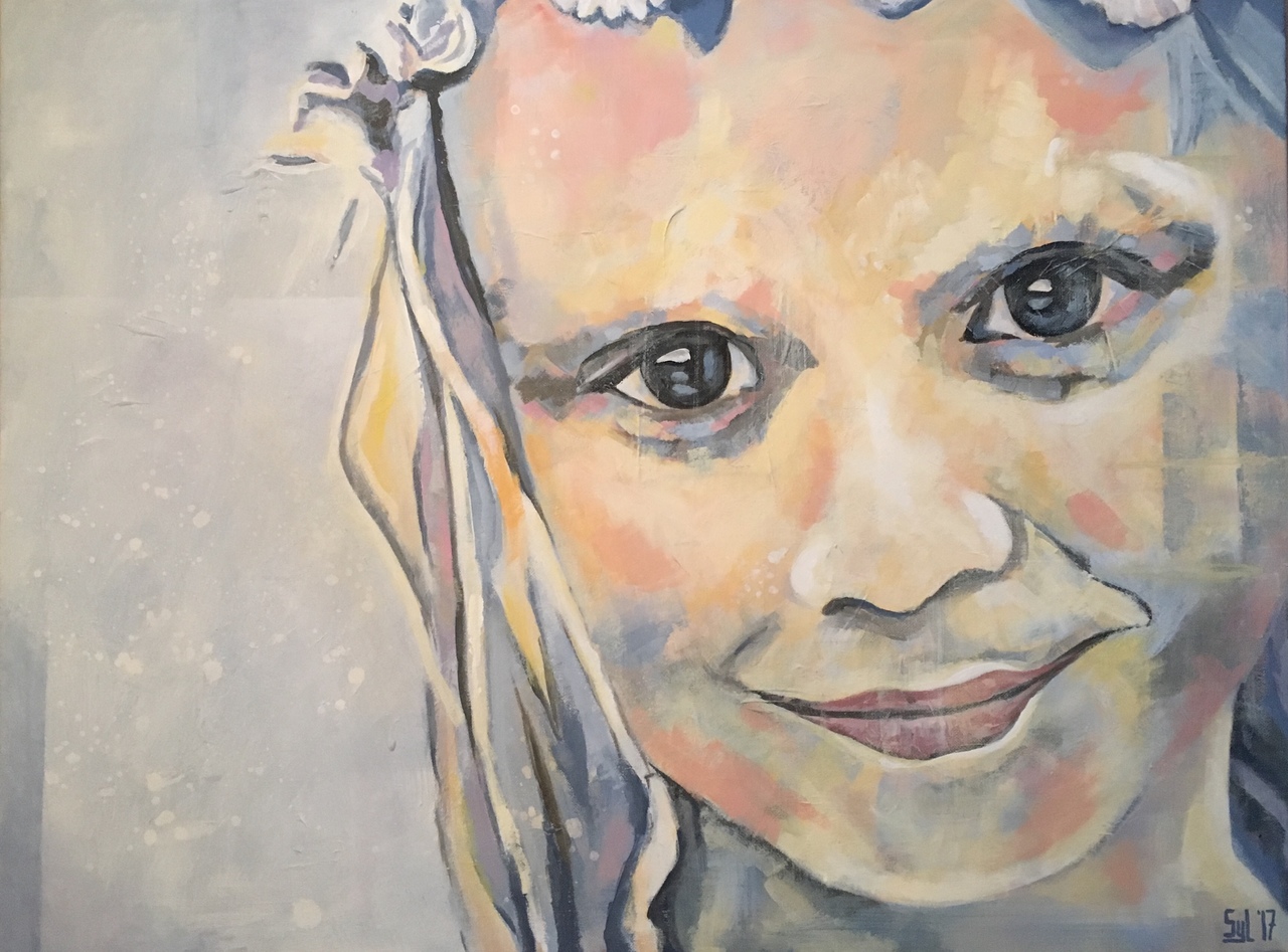 Portret Kind Meisje Acryl Pastelkleuren Lief