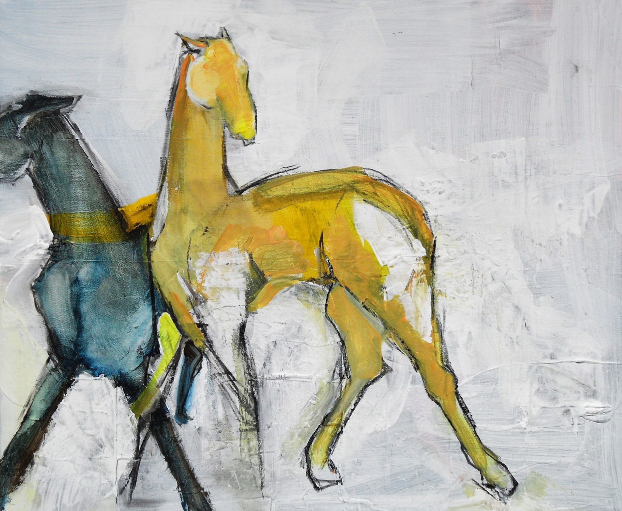 Wit Figuratief Geel Zwart Blauw Acryl Dier Doek Abstraherend Houtskool Paard