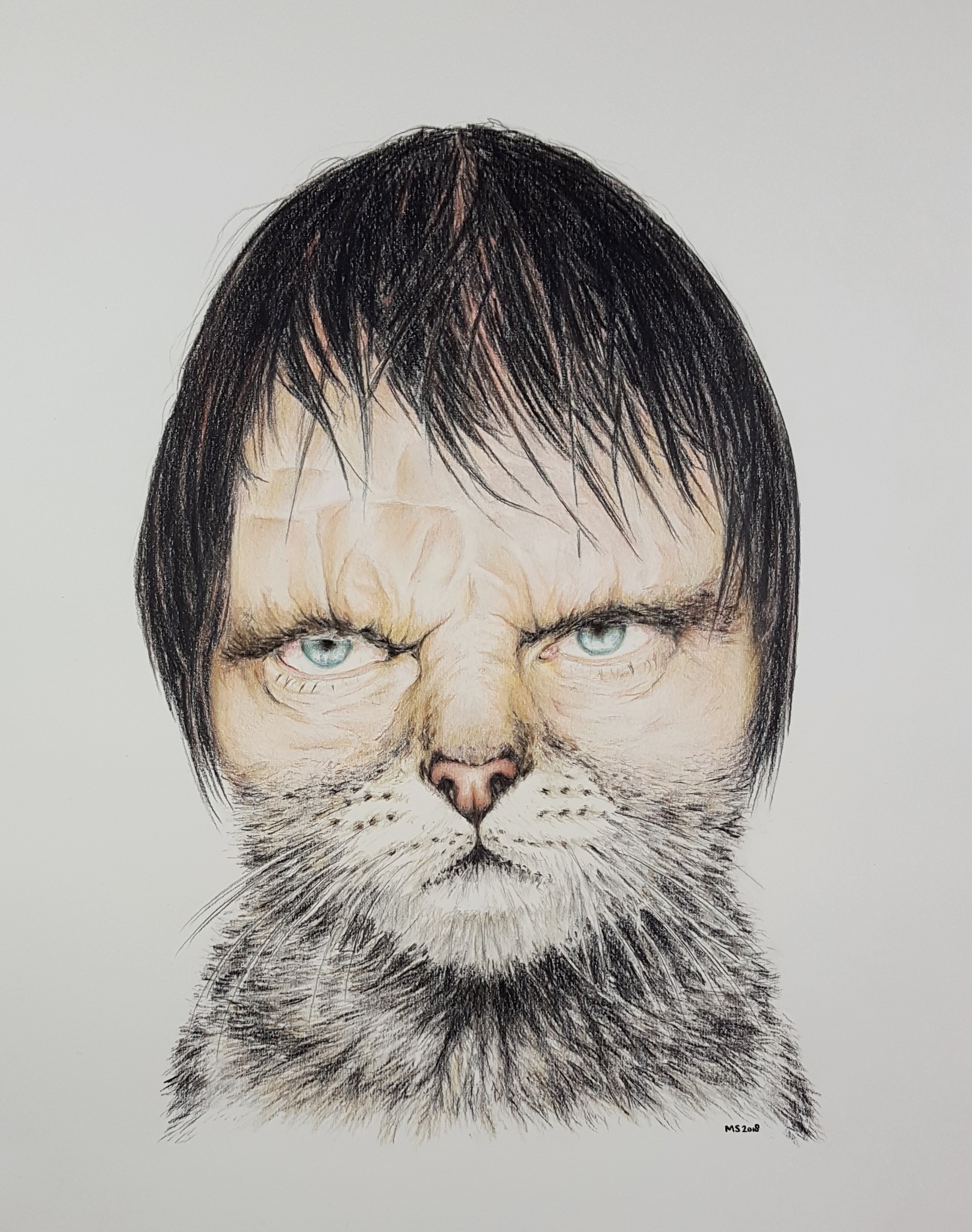 Man Kat Tekening Drawing Cat Michael Older Stockfish