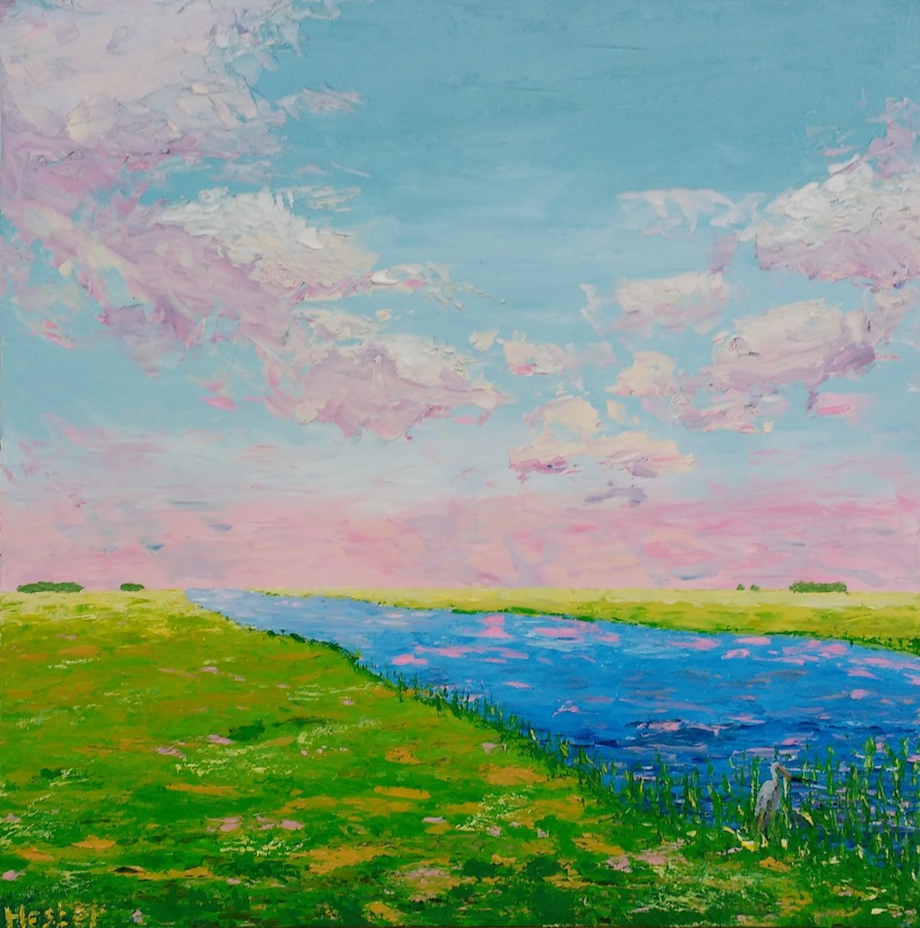 Blauw Groen Olieverf Roze Weiland Reiger Sloot