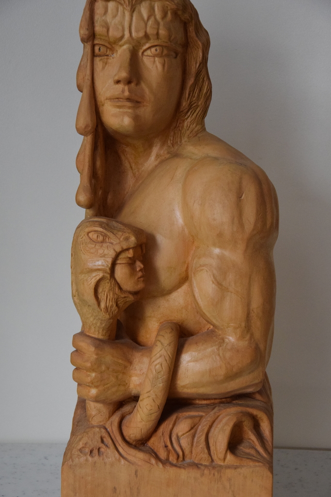 Beeld, houtsnijwerk Man de genadeloze Narcist