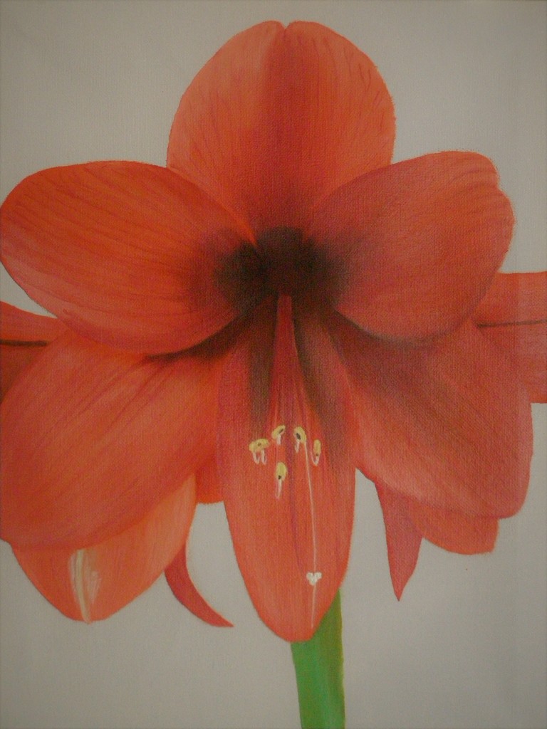 Amaryllis geschilderd naar voorbeeld op vaas als oefening "nat in nat".