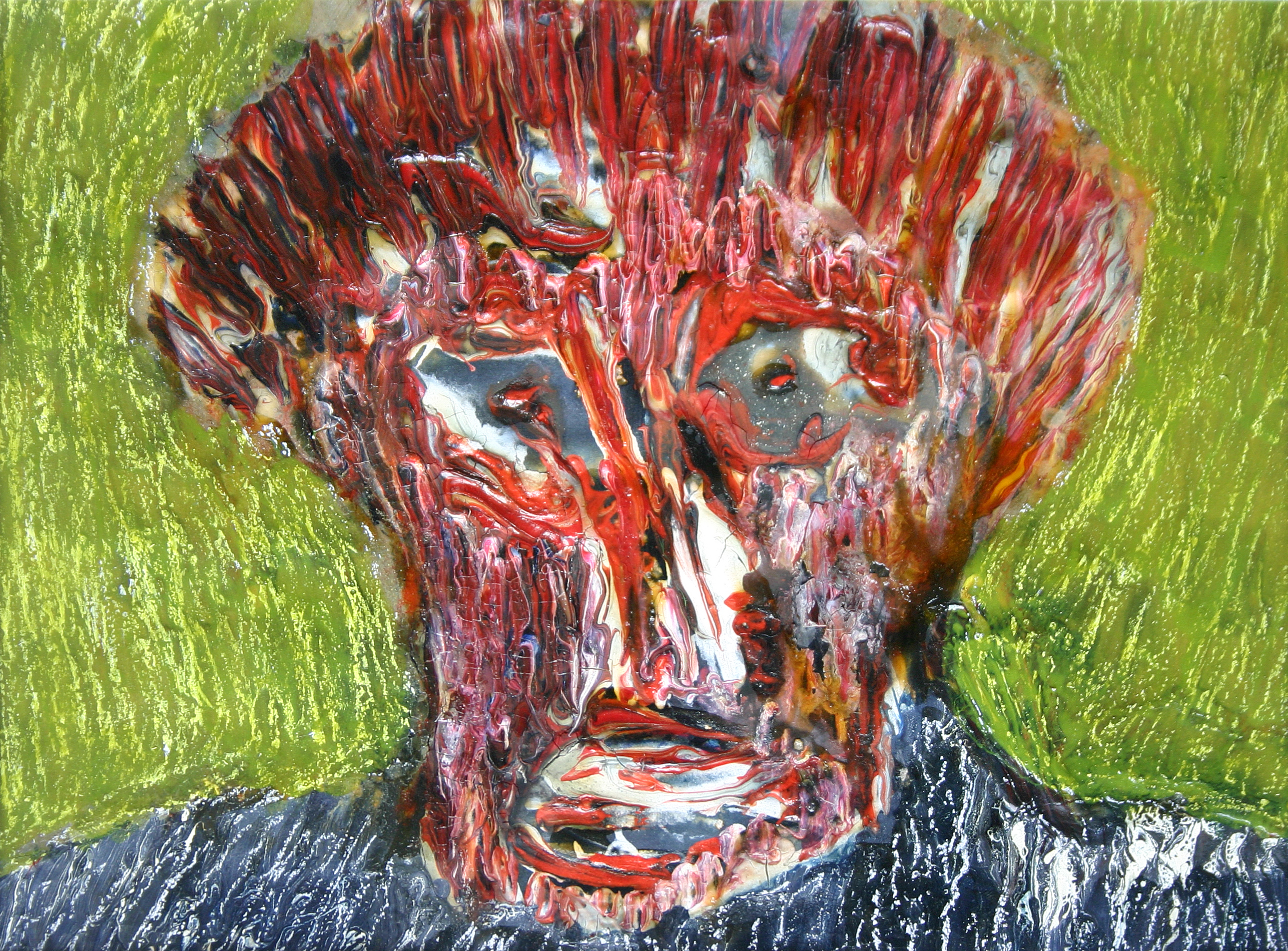 1986-2006 wanhoop over de wereld, rondmalen van gedachten, verdriet. (plakkaatverf, inkt, krijt, acrylverf, tandpasta op papier)
