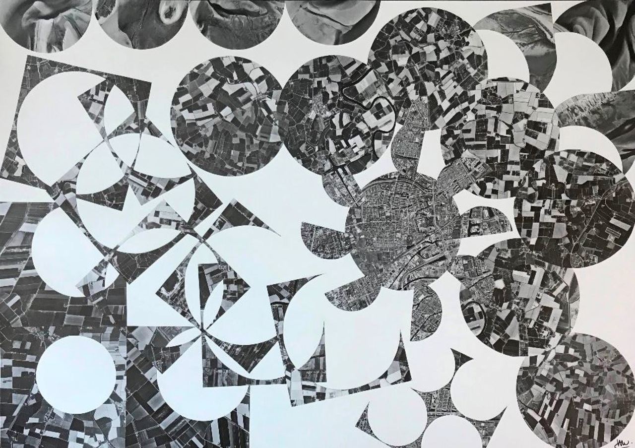 Ik maak papieren collages. Hiervoor gebruik ik tijdschriften, bij voorkeur de meer glossy uitgaven. Ik volg mijn intuïtie en gebruik mijn verstand bij het oplossen van 'problemen' in de verbinding van de papieren onderdelen.