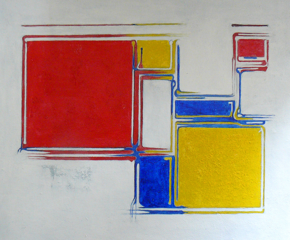 Variatie op Mondriaan, met acryl op stucloperkarton