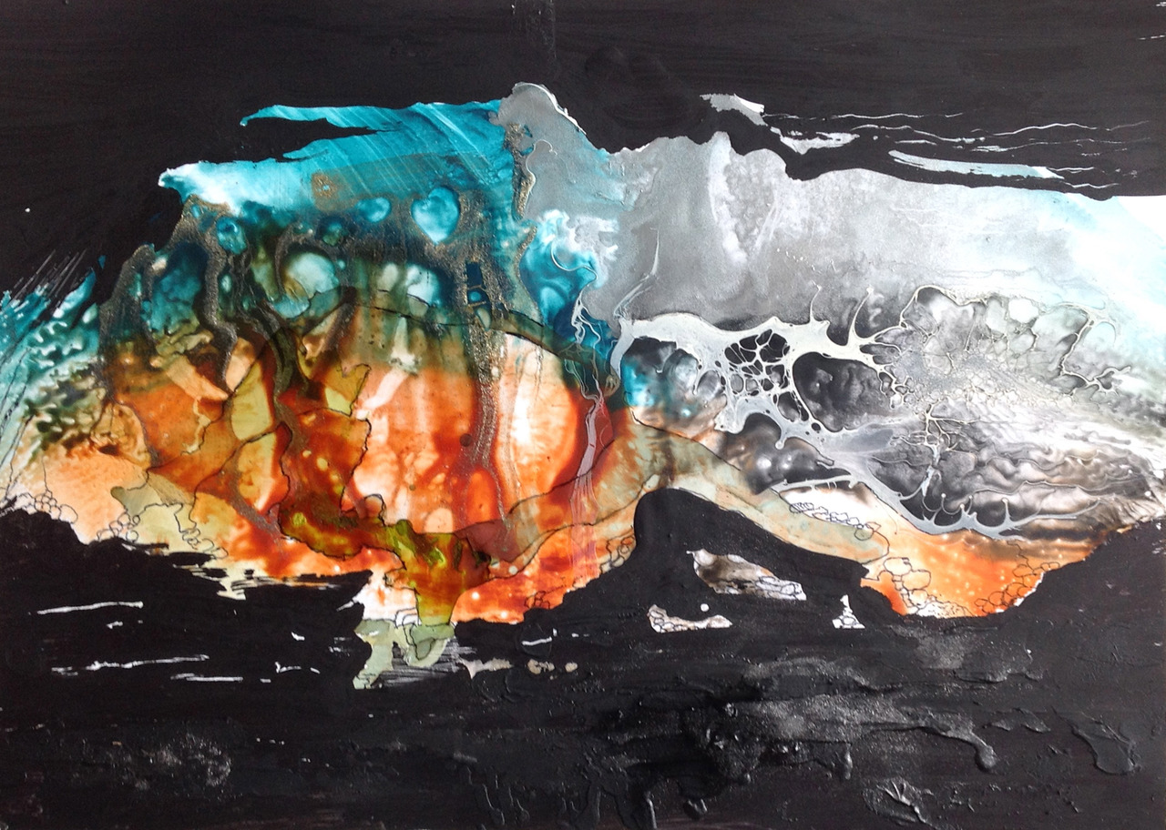 Bijenwas met shellack, acryl en alcoholinkt.
