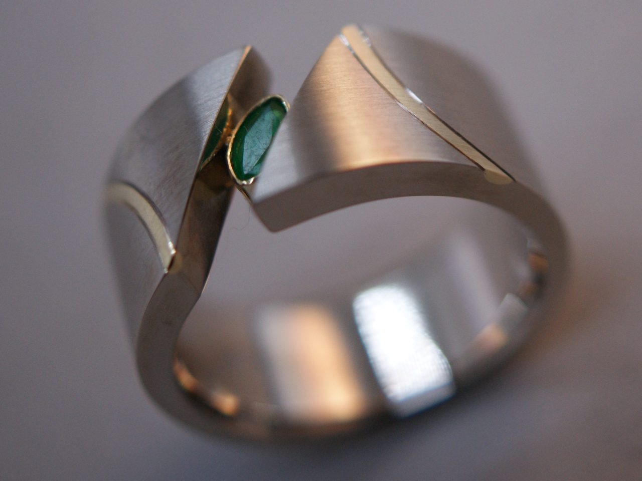 heren ring wit - met geelgouden inleg en smaragd