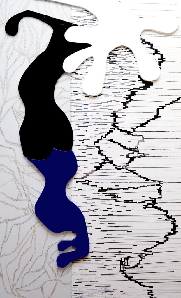 Spelen met blauwe vormen, tijdschijf papier op foam canvas.