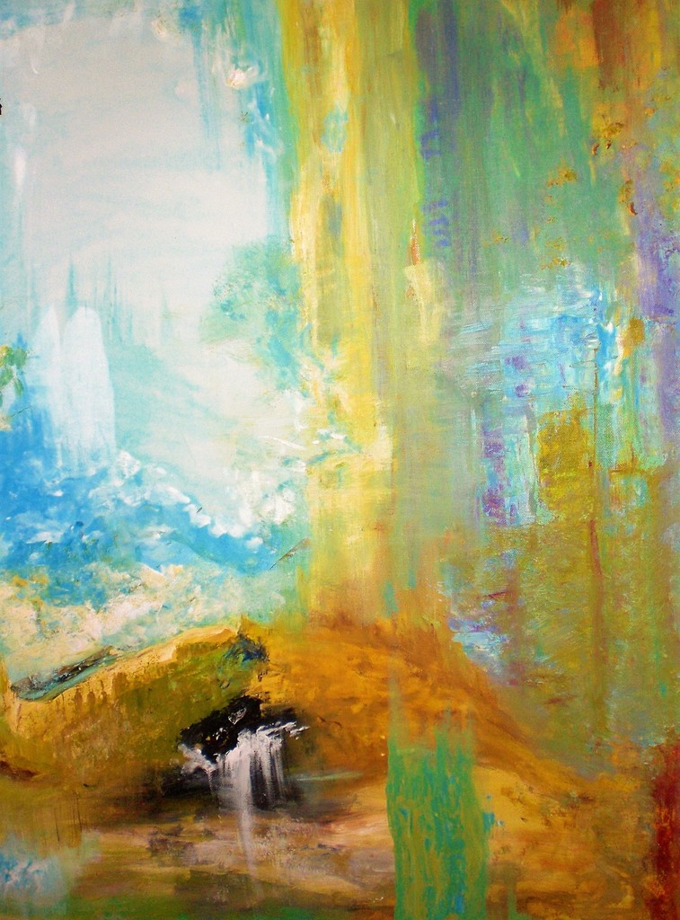 Met de opmaak van dit schilderij voor Exto kreeg ik niet voor elkaar dat de onderkant ook onder kwam, leve de computer. Uiteindelijk is het gelukkig wel gelukt, doorzetten dus, maar daar door is de titel van dit schilderij ontstaan. Vaak is in het gewone leven een andere manier van kijiken, de onderkant bijvoorbeeld boven zien, een verademing en geeft ook nog vaak oplossingen aan die je anders niet ziet,. vastgebakken in je eigen manier van kijken. Geef mij maar een schilderij, daar gebeurt, soms na lang poberen, uiteindelijk wel wat je wil, of komt spontaan tevoorschijn, wat goed is voor het schilderij en mij.
