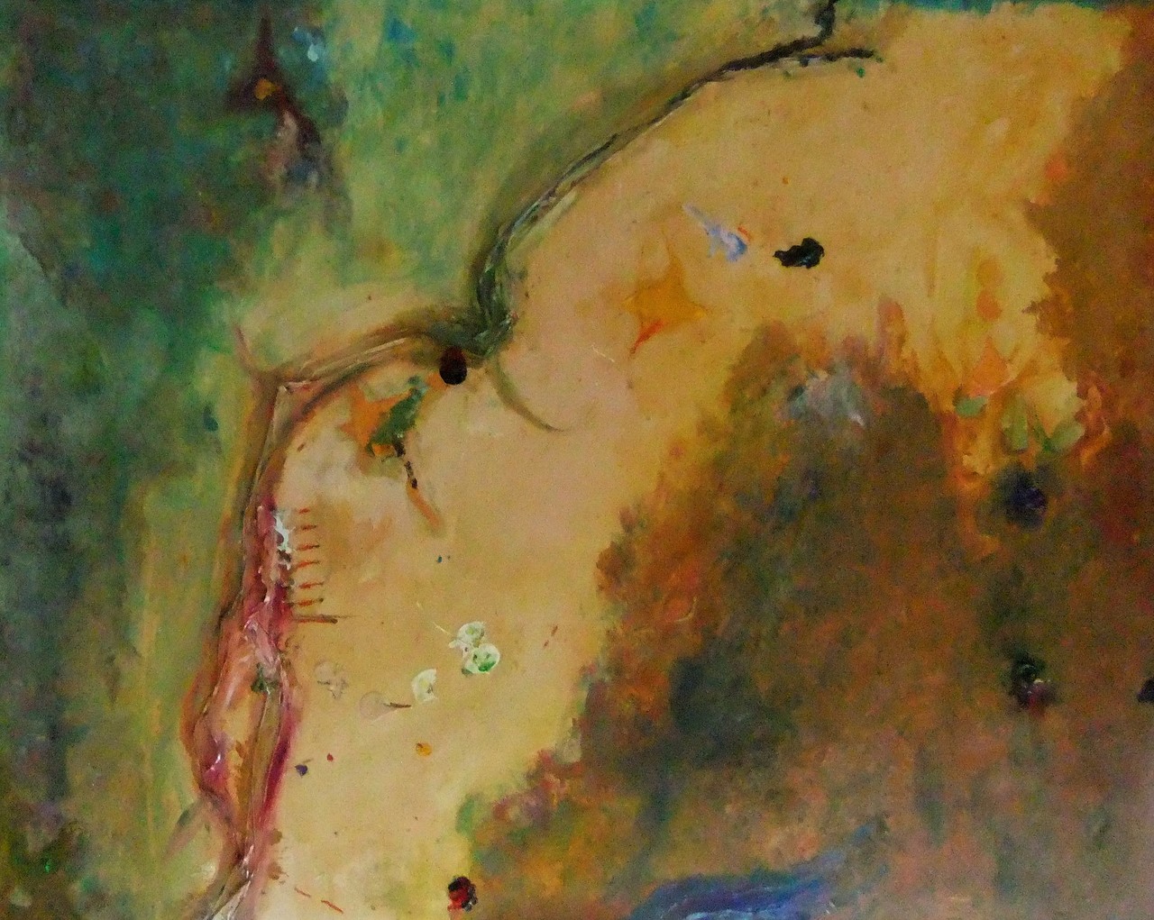 Aanleiding voor dit schilderij maken was een gevonden stukje raffia, wat een bos mooie bloemen bijeen hield, wat door een milieubewuste duurzame bloemist is gebruikt, waarvoor ik hem nu dankbaar ben, hoewel ik hem of haar niet ken. Deze raffia is op schilderij geplakt in de vorm die het zelf had aangenomen toen het achteloos op het schildersdoek werd weggelegd en later als eenzaam, maar prachtig stukje raffia op nog blanco doek lag.Dit werd zodoende het uitganspunt van het schilderen, de basis, het fundament, ook al was het teer, zacht, kwetsbaar. . Door de zogenaamde stekels op het schilderij die lijken op de voelsprieten van een garnaal, is de naam ontstaan.