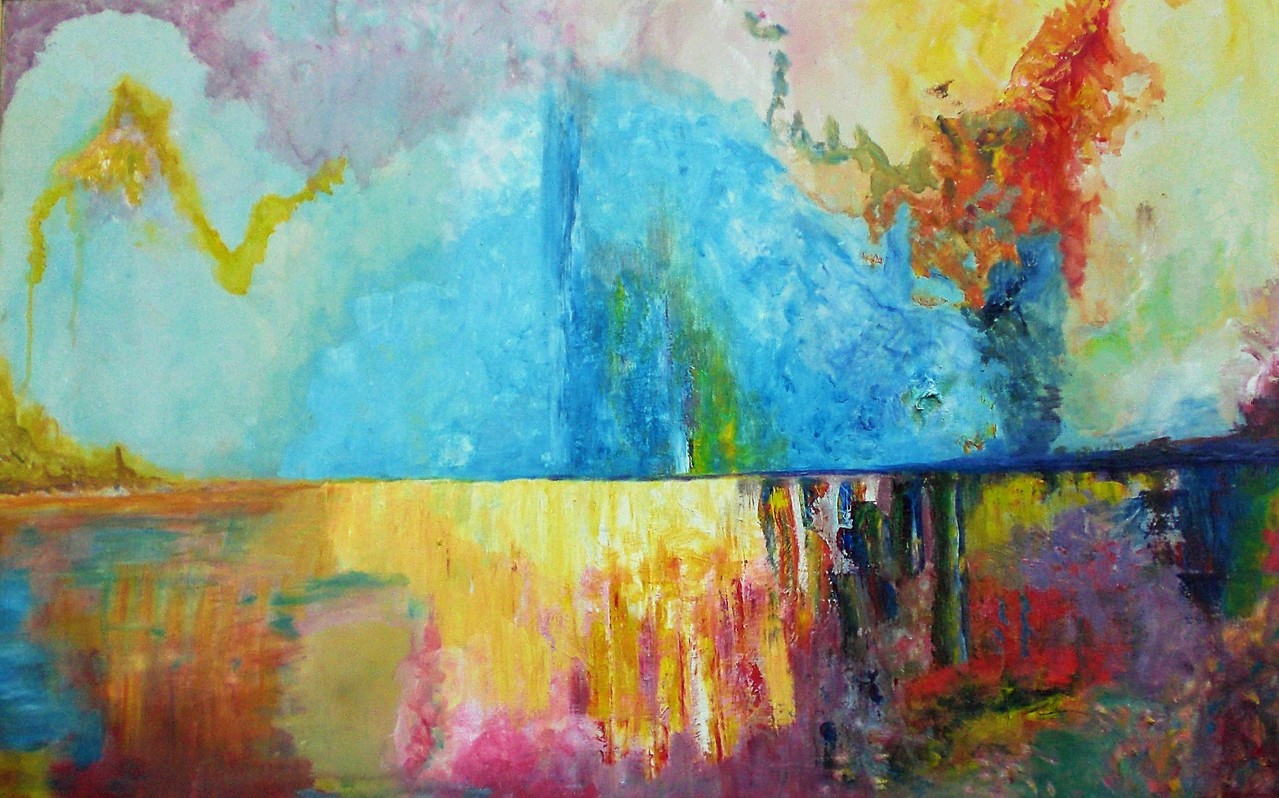 Dit geeft de omslag, ommekeer weer in het gebeuren wat mijn zoon meemaakte bij zijn zoektocht naar waar zijn hart eigenlijk naar uitging in dit leven. Ik was toen heel blij dat er een soort keuze in deze worsteling plaatsvond en hoop dat dit schilderij dit ook weergeeft.